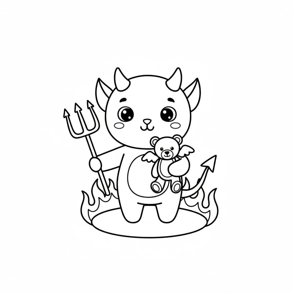 Aranyos démon medvével színező