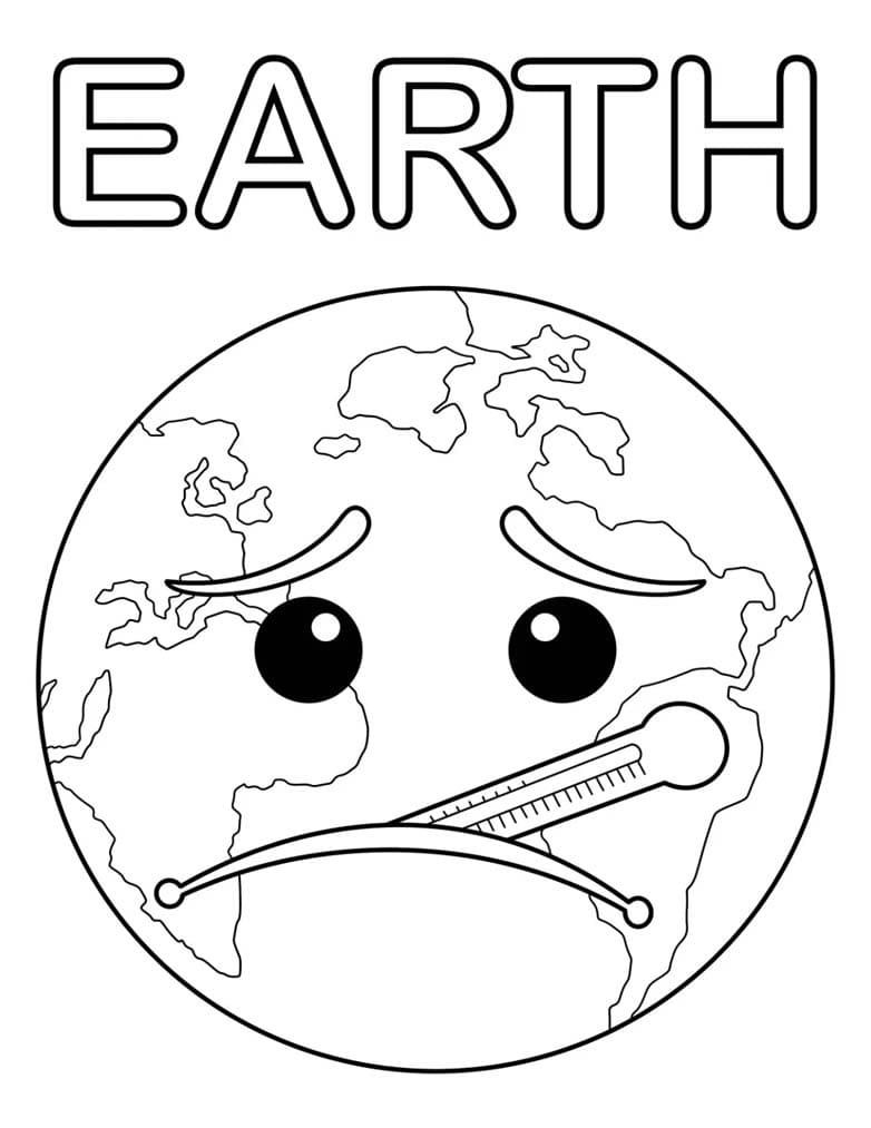 Online Színezés: Beteg Föld hőmérővel a szájában