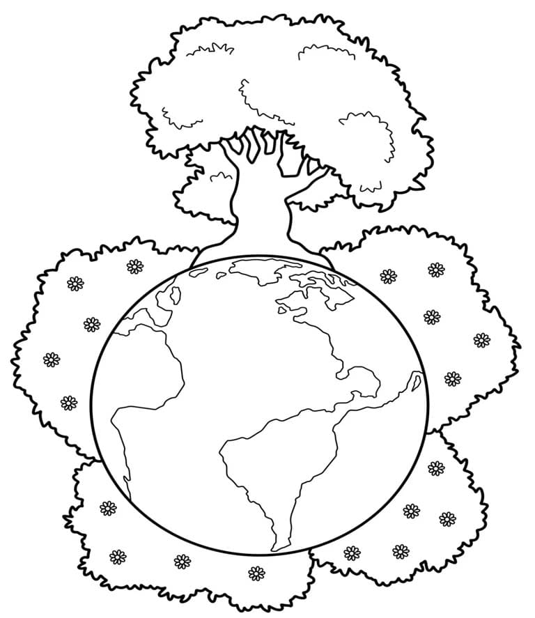 Fa és virágbokrok nőnek a Föld körül Színező
