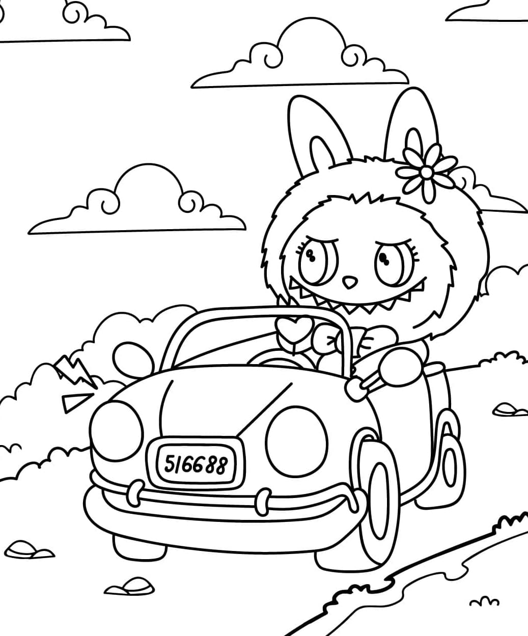 Labubu autóvezető színező